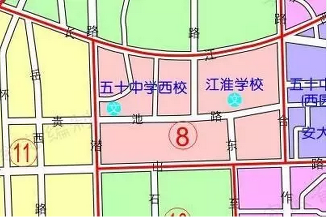 (一)50中(東區):50中東區歷史悠久,是五十中發展的發源地,其前身是創建于1957年的梅山路小學,于1975年正式命名為合肥市第五十中學,學校從上世紀八十年代起,教學質量穩步提高,到九十年代步入一流初中的行列;