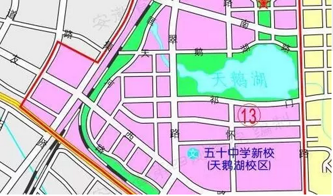 (四)50中(新區):2009年9月10日,由合肥市委書記孫金龍親自奠基的五十中新校區正式動工,新校區占地面積約75畝,總投資約1.13億,總建筑面積約2.8萬平方米,建成之后,成為五十中屹立在天鵝湖畔的一個一流的嶄新校區,新校區于2010年正式招生。