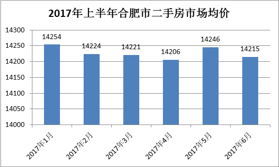 據(jù)安徽中信惠遠V估價系統(tǒng)顯示,2017年上半年合肥市二手房均價為14231元/㎡,上半年的均價從下圖中可以看出是較為平穩(wěn)的,沒有大起大落,較之2016年下半年合肥房價暴漲后的五限調(diào)控,這個結(jié)果也是情理之中的。
