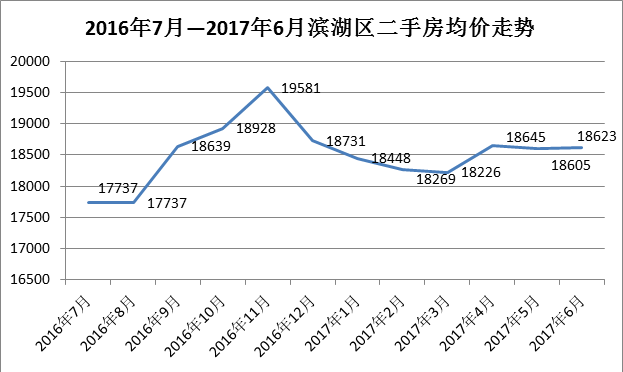 濱湖區(qū)一直是投資客較為集中的區(qū)域,2016年的濱湖樓市異常火熱,新房價漲帶動區(qū)域二手房均價水漲船高,限購之前濱湖區(qū)的二手房均價呈直線的趨勢上漲,限購之后一路下跌大相徑庭,與2017年4月份后趨于平穩(wěn)態(tài)勢。