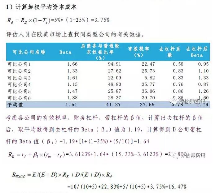 在計(jì)算非上市公司股權(quán)時(shí),通常采用加權(quán)平均資本成本(RWACC)作為企業(yè)自由現(xiàn)金流折現(xiàn)法的折現(xiàn)率。加權(quán)平均資本成本,是指企業(yè)以各種資本在企業(yè)全部資本中所占的比重為權(quán)重,對(duì)各種長(zhǎng)期資金的資本成本加權(quán)平均計(jì)算得出的資本總成本: