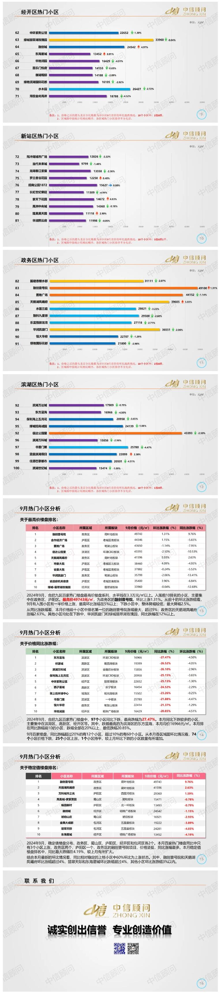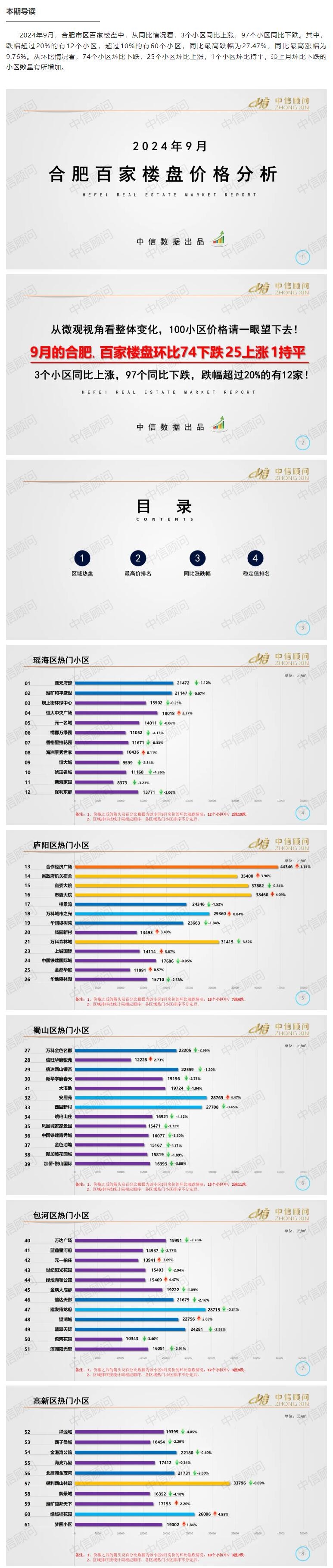 二手房市場 | 2024年9月,合肥百家樓盤環比74下跌25上漲1持平,同比97%樓盤下跌