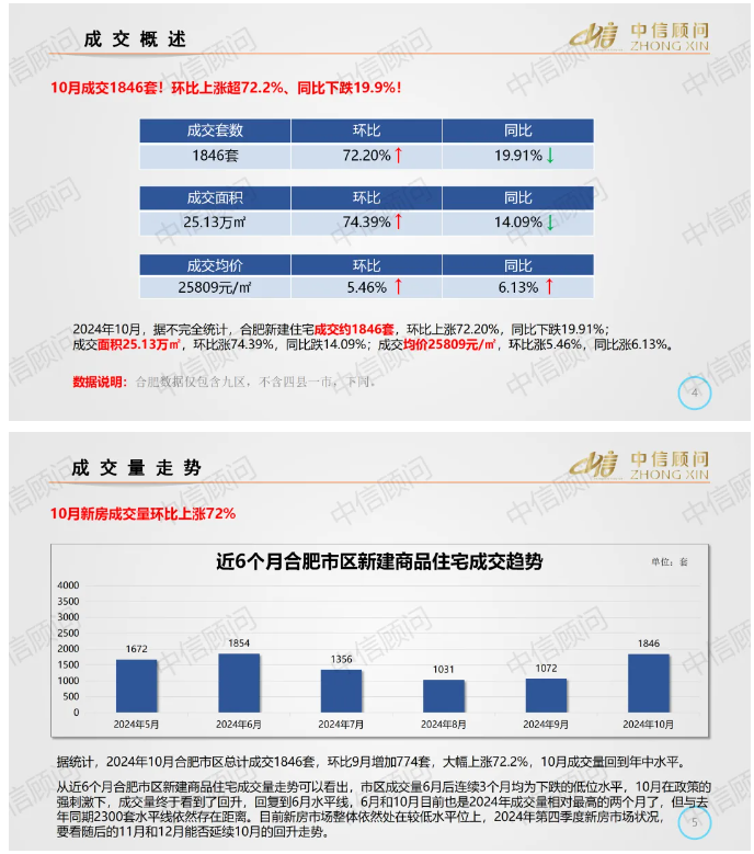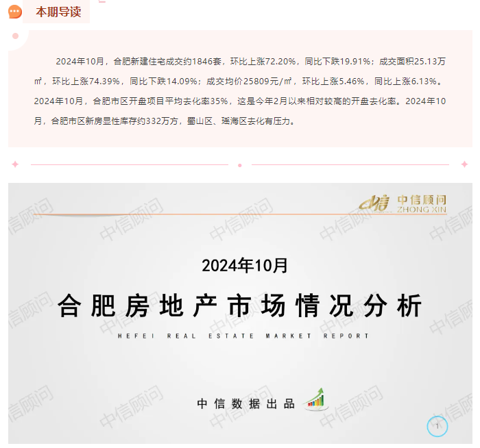 新房市場 | 2024年10月,合肥市區新房成交量環比上漲72%,同比下跌20%