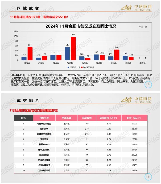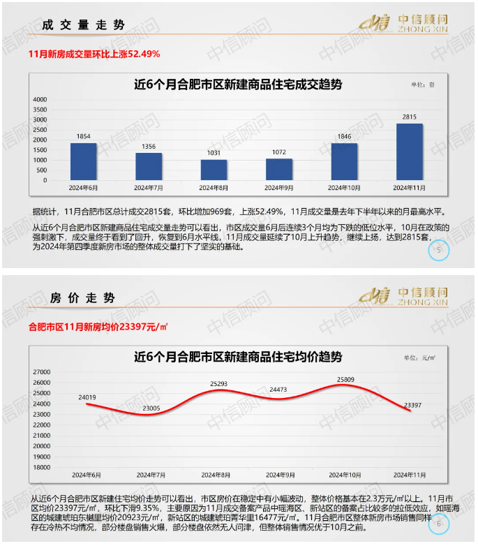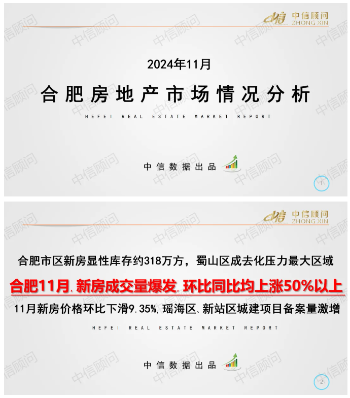 新房市場 | 2024年11月,合肥市區新房成交量大增,環比同比均上漲50%以上