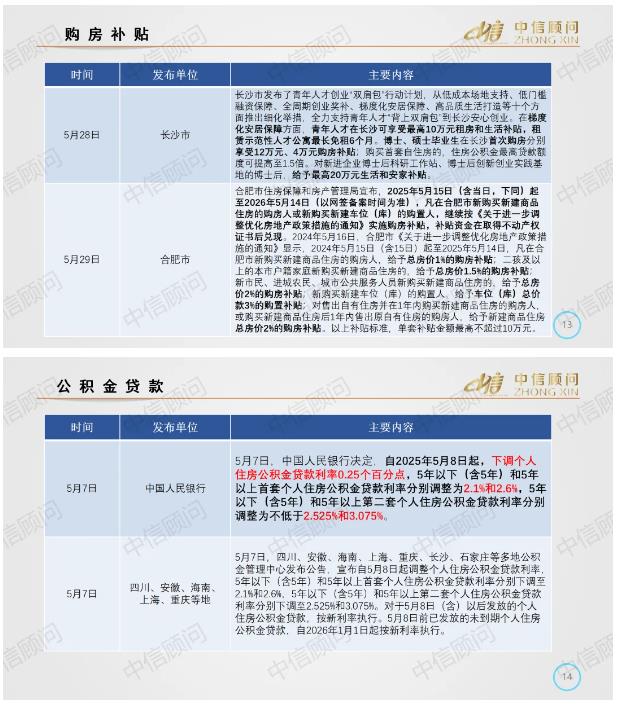 政策導向 | 2025年5月,中國人民銀行:下調個人住房公積金貸款利率0.25個百分點