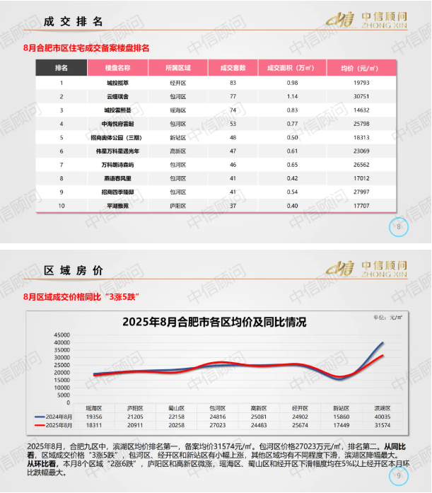 新房市場 | 2025年8月,合肥新房成交量環比上漲12.85%,成交價格環比下跌3.42%