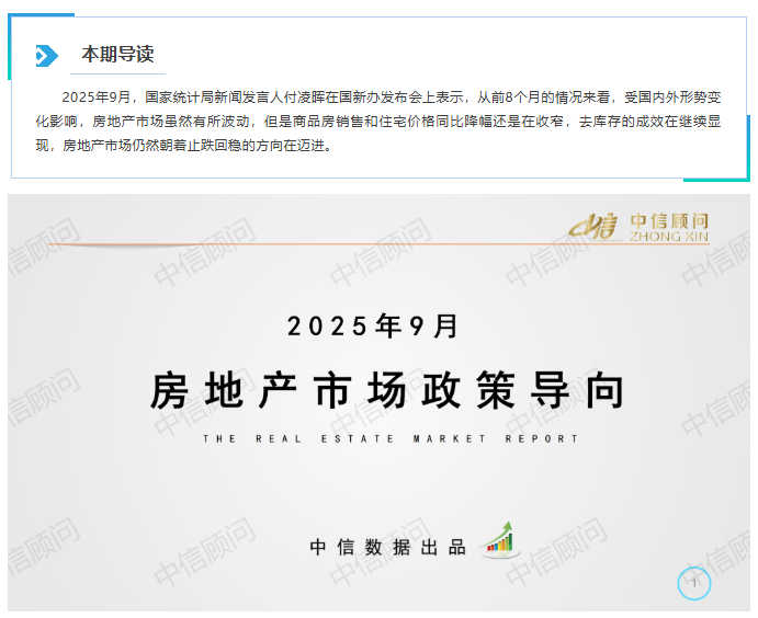 政策導(dǎo)向 | 2025年9月,國家統(tǒng)計局:房地產(chǎn)市場仍然朝著止跌回穩(wěn)的方向邁進(jìn)